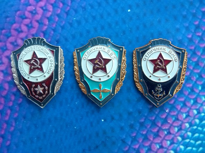 9. Комплект нагрудных знаков Отличник советской армии, легкий/эмаль/заколка. Цена за комплект 450руб.+пеесыл 80руб.ПРОДАНО!!!