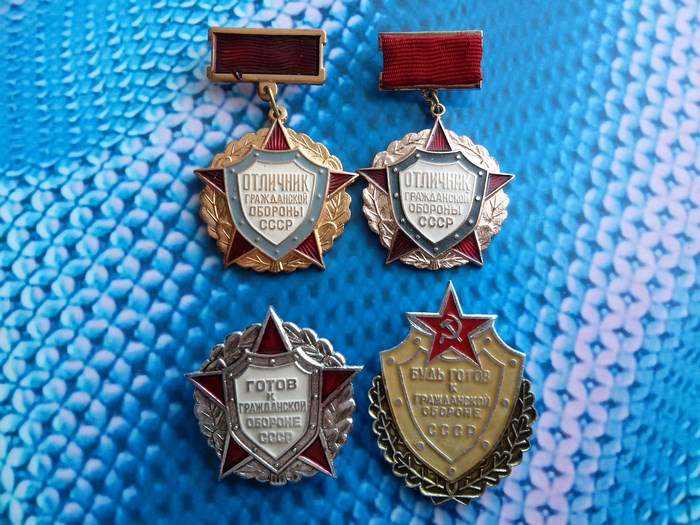 26. нагрудные знаки "Отличник гражданской обороны СССР" и "Будь готов к гражданской обороне СССР" 4шт. одним лотом, разновиды. цена за набор 400руб.+пересыл от 100руб.