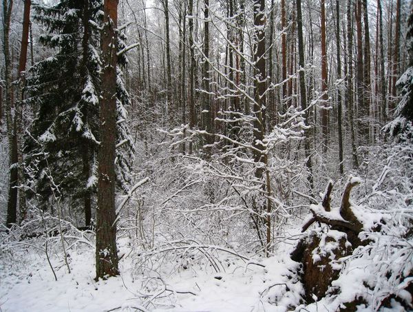 Добрый всем вечерок! Съездил вчера в лес. Место интересное - старая дорога к церкви распаханная лет шестьдесят назад, а теперь на этом месте лес. Летом находились места поинтереснее ну а сейчас - самый раз. Но судя по всему, сезон свой я все-таки закрыл. Во-первых, землю и в лесу прихватило сантиметров на 10 - 15