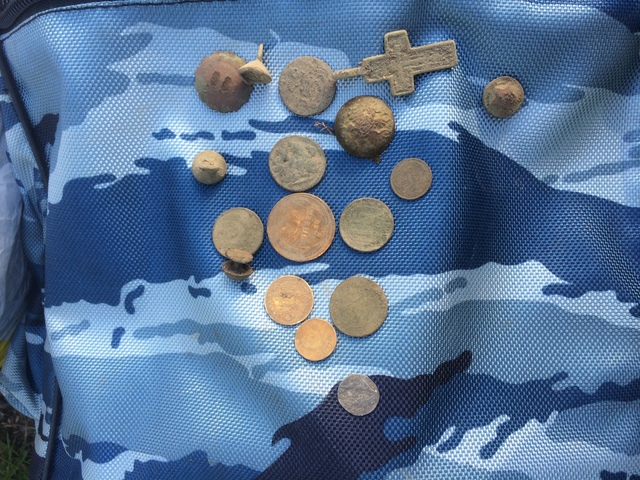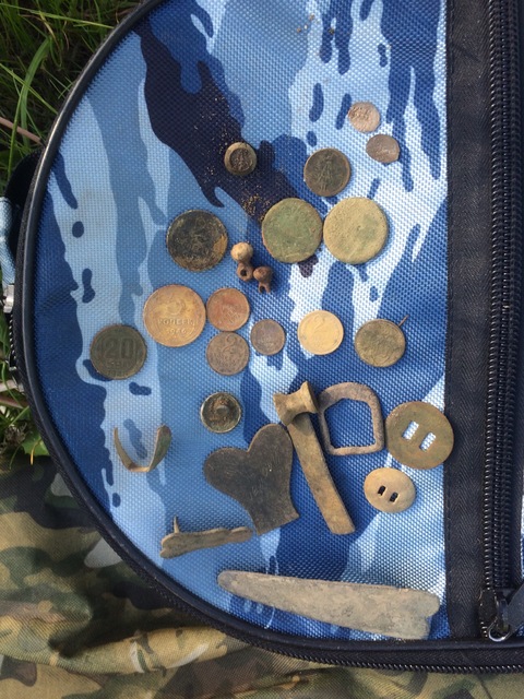 Субботу утром заскочил на 4 часа. В итоге 3 коп 54г. Все перерыто конкретно, шурфы, кирпич, керамика.... Трава в лесу, комары, мусора до ж.. Зато красота на запретке. |