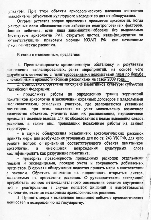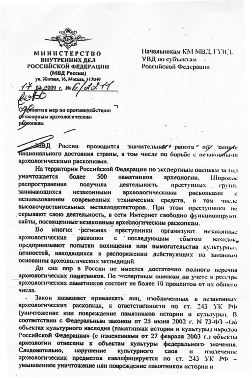 QUOTE(Евлампий @ Apr 18 2011, 18:27) Да тут всё проще, письмо наверное это все читали? В конце 2010 закончили формирование отделов в крупных регионах, там где ещё не успели, переложили на участковых пока, а дальше больше... В этом году с них показатели требовать уже начнут по этой теме... Самое интересное, призывают после задержания, признавать место "ПАМЯТНИКОМ", с вытекающими последствиями... Особенно нравится п. 5 в этом трактате 2009 года, "Провести мониторинг сайтов...." Рекомендую и дальше комрадам дословно указывать место собственных землековыряний, т.к. раскопками это непозволяет назвать КОАП, в своих мемуарах на страницах общедоступных ресурсов... Копайте черный металлл и будет вам спокойствие- призываю вас БРАТЬЯ!!!!!! -------------------- .....и будешь ты взвешен, и найден легким.....