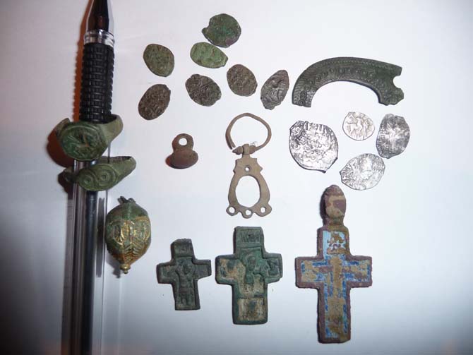 Да в принципе ничего сверхъестественного: пара килевиков, симпатичный оловянистый крест и нераскрытый энколп