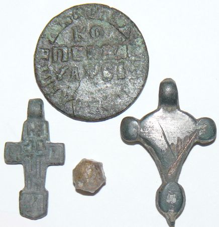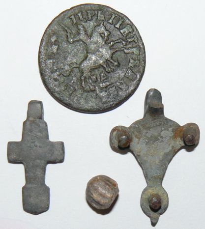 QUOTE(Серрый @ Jul 19 2011, 23:58) Сегодня вышел в поле -колечко и крест сильно раскуроченный. +С предыдущего раза штуковины интересные. Штучки - не знаю что, но на период империи не похоже QUOTE(Bar_B_Q @ Jul 20 2011, 11:31) Копеечка прикольная двойной удар вроде на "конике"!! Вчера вернулись с двухдневного копа....фото с Namrega!!! не, удар обычный...вроде -------------------- Клад найти - не поле перейти