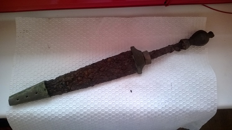 Хороший ножичек. В ножнах даже) Только фото очень плохое. Подсвети его получше и с разных сторон сфотай. Рукоять там, навершие хорошее вроде...