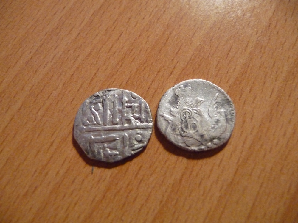 А тебе уже подсказали- ПОДРАЖАНИЕ, грубо говоря подделка дирхема того времени... Я так понимаю, раз иероглифов красивых нечитается....