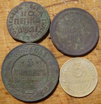 Ехал вчера по родной деревне, смотрю- друган стройку затеял. Фундамент под гараж готовит. Давай, говорю, прозвоним. Звони, говорит, только сосед уже всё вызвонил 3 года назад. Нашёл 8 чешуй "египедских".( я так понял, что дирхемы