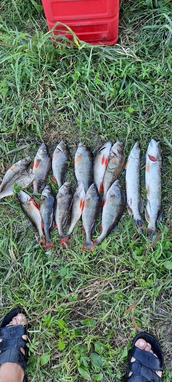 QUOTE(Matveev @ Sep 21 2021, 18:48) Тут на днях прикупил мепсик вертушечку-2ечку,работает зараза. На ультралайт таких добрых окуней - незабывемый кайф и удовольствие!Окуньков хорошеньких на дёргал,да ещё и на ультролайт,ваще удовольствие не описуемое Поздравляю не только с достойным уловом, но и с уловистой блёсенкой! Редко так попадёшь сразу в дамки с приманкой. QUOTE(айрус @ Sep 21 2021, 19:41) Здравствуйте,поздравляю всех с отличными уловами, сегодня и я сгонял за небольшой рыбкой,платвичек красноперка и уклейка,размеры не велики,но приятно половить. Всё пойдёт на вяль,самая большая 18 см.Удачи всем! Согласен с Солтеком, крупная уклейка в вяленом виде - объеденье! QUOTE(Gazkom @ Sep 21 2021, 21:55) Сегодня распогодилось, и у меня выходной. Сгонял за щучкой. Маленько поймал. Живец - пескарь, поплавочка. Семь в садок, две ушли с пирсингом. Вроде бы осень, но щука плохо берёт живца на поводке, даже на тонком вольфрамовом, схватит его и стоИт, не заглатывает. Спасла положение двойная леска, но из-за неё два откуса было. Всего поклёвок под два десятка. Самая на 1,5 кг. Отличный улов, поздравляю! Тоже обожаю на живца ловить. Пескарь - лучший живец всех времён и народов. Но не церемонюсь с поводком - самый тонкий вольфрамовый отлично себя зарекомендовал. Гибкий, не виден особо, и не порвётся при зацепе или поклёвке крупняка. -------------------- Ишь ты...
