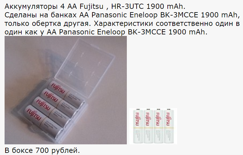 1) DESAY Flash CHARGER. Давным давно она у меня. Уже и не вспомню, когда покупал. И на охоте, и на рыбалке, и ..., везде она со мной. От сети 220 и от авто 12 заряжает аккумуляторы АА и ААА. Удобно. Мало места занимает, лёгкая. Что ещё написать? Да везде побывала, во многих моих приключениях. До сих пор работает. Иногда ей раскачиваю старые аккумуляторы, которые более умные зарядки не хотят сразу брать. Забудешь, ну или закрутишься в повседневной суете, подзарядить аккумуляторы и приходится в эту зарядку вставлять на пол часика или часочек аккумуляторы для толчка. Потом уже в умные зарядки можно вставлять. И проводить полный умный цикл заряда/разряда. Но можно и в ней оставить, она тоже достаточно умная зарядка. Не раз меня выручала. Доволен я ей, хоть она и старая модель. 2) После первой зарядки, решил обновить технику. Взял Universal1000 LCD. Заряжает вообще всё, 1-4 аккумулятора АА/НR6, ААА/НR03, С/НR14, D/НR20 и 1-2 аккумулятора Крона 9В. Что по ней сказать, нормальная зарядка. Умная. Есть цикл разряда/заряда. Проблем с зарядом пока небыло. Вроде всё нормально заряжает. Ну если не считать некоторых совсем старых старых аккумуляторов, которым иногда нужен первоначальный толчок. Есть у меня и такие старые древние аккумуляторы, но до сих пор работают вроде. Так что классная зарядка. Даже вентилятор внутри стоит, для охлаждения аккумуляторов. Хоть и маленький вентилятор, но стоит. 3) Увидел тут недавно другую зарядку MasterCharger Pro. Так она ещё и литиевые заряжает?! Да ещё и умная?! С разряд/зарядом. Заряжает Ni-Cd, Ni-MH и Li-ion аккумуляторы, Li-ion: 26650, 22650, 18650, 17670, 18490, 18500, 17500, 17355, 16340 (RCR123), 14500, 10440, Ni-MH/Ni-Cd: AA, AAA, A, SC, C. Ну вообще, полный набор зарядок получится если куплю такую. Сказано- сделано: купил ещё и её. Так она же тоже, не только от 220 вольт, но и от 12 вольт автомобиля работает. Вообще класс! Но она у меня недавно. Особо много не скажу про неё. Работает, аккумуляторы заряжает. Претензий нет пока к ней. И литиевые заряжал ей, и никелевые. Вроде пока всё нормально. А дальше время покажет. 4) Аккумуляторы. Про старые и древние не буду писать. Сейчас наверно таких уже не выпускают. Из последних, что прикупил на пробу: Robiton AA 2850 mAh. Вроде неплохие, но надо ещё потестировать. Пока претензий нет к ним. А дальше видно будет. Лето ещё не наступило, для активного использования. Ну про автомобильные зарядки писать не буду, наверно никому не интересно. Только если коротко: ОРИОН из СПб. Их у меня несколько разных. Доволен их работой. Да и солнечная батарея на багажнике автомобиля стоит. Проводов для "прикуривания" из принципа не вожу с собой. Аккумуляторы всегда заряжены. Уф-ф-ф. Ну вот вроде и всё написал. -------------------- Мои МД и пин: X-Terra 705, Garrett ATX, Сфинкс 02