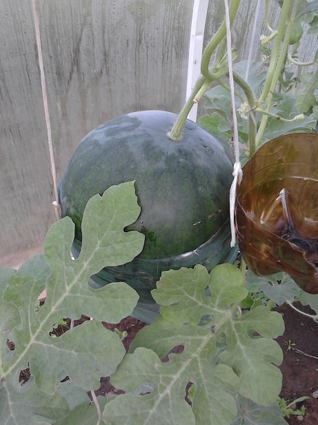 А пластик не вредит шкурке арбуза? Не загнивает он там? Тоже хочу попробовать, арбузы уже высадила... Нет арбуз не гниёт, только полностью повторяет форму бутылки, вроде японцы квадратные выращивают, для удобства перевозки. Да вроде и наши в ящиках растят только перед сбором вынимают из ящика чтобы позеленел. -------------------- Ветер в голове не бывает попутным.