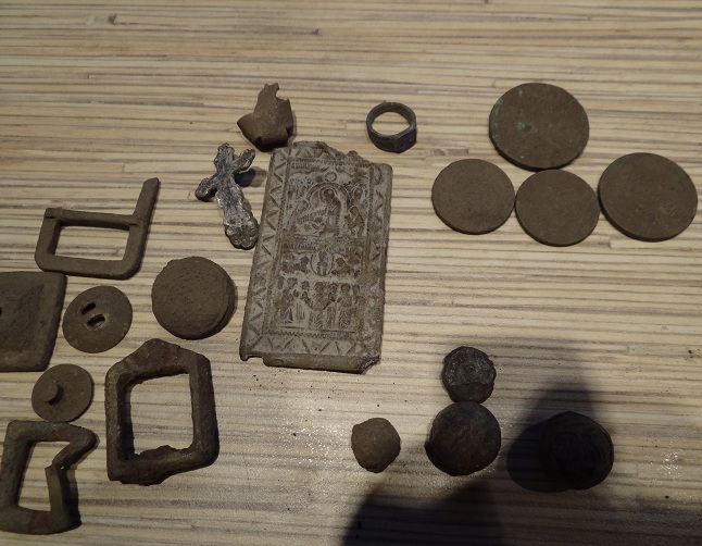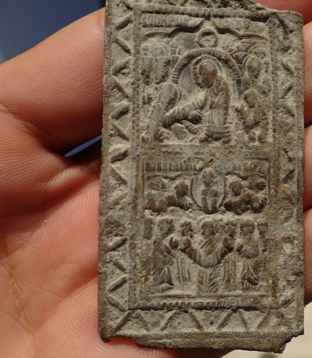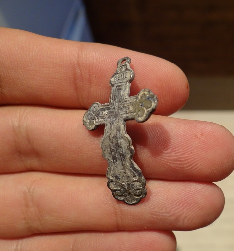 после работы поехал и сначала пломба выскочила, потом пряжка поломанная а вот потом крест свернутый почти в круг и за ним остаток складня. если знаете то по сюжету подскажите, был гдето на глубине 40 см. и в этот же день двуха Александра выскочила. ну и на этом коп закончился.