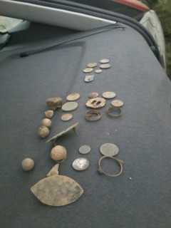 Сегодня устроили мини слёт, втретились на месте в три машины, 6 чел. Ещё и местный вокруг бродил с Аськой. На первом часу попались три монетки и весь день проходил впустую, лишь под закат сын позвал на спорный бегающий сигнал и попался гнутый сер. крестик. Сообщение отредактировано Tata: Jan 2 2014, 20:40 Вложенные эскизы изображений -------------------- Чем сидеть даром, лучше ходить попусту.