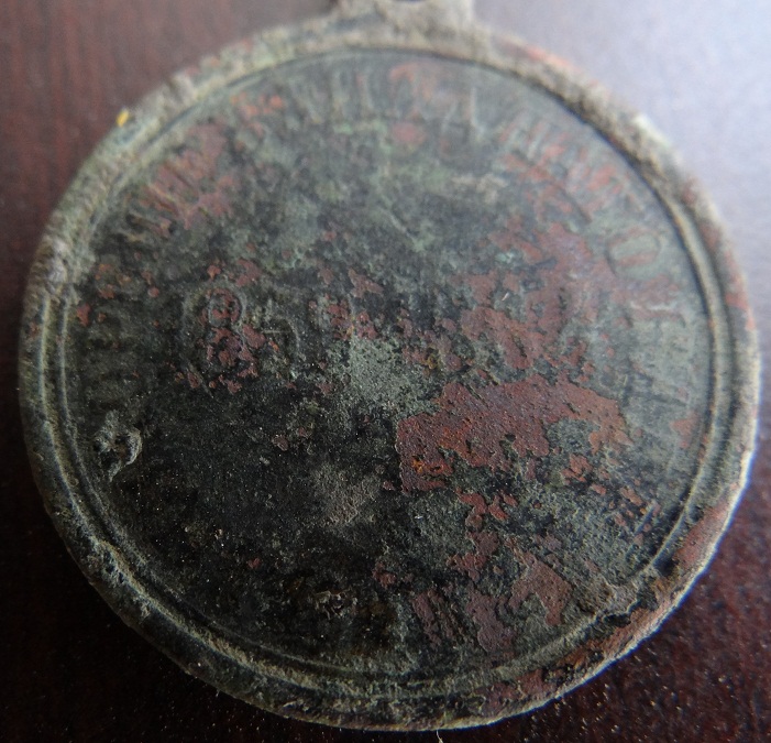 разбавлю темку. зацените медальку, поднял в июне на месте бывшего хутора "цыганки" кроме медали попался медный крестик и остатки пуги. Это первая поднятая мной награда.