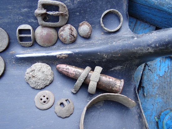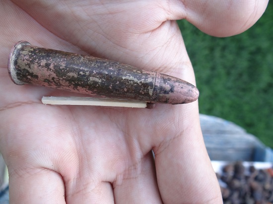 QUOTE(art_zakonm @ Sep 13 2012, 16:03) Всем привет, наконец дорвался до инета. Вот небольшой отчетик что успелось в прерванный отпуск. Съездил к родычам но покопать по человечески не получилось, пьянки , рыбалки и беседы этого не удалось избежать. но в первые 2 дня часа по 4 удалось уделить и в последний день тоже часок покопал. В первый день нашел 3 коп., 1/2 коп, лопнутое кольцо, позолченную пуговку, серебреную и обычную пуговку, но их коррозия убила и 2коп., во второй день целое кольцо, 3 коп. 1938г, пару пряжек и одну пуговку, еще часть ,видимо, браслета медного, 1коп и пулю по которой вопрос чья она и какого периода?. и перед отездом еще конинку, 20 коп серероян. и 1/2 коп. Поле по которому ходил лет 20 не пахалось и там скот выпасают,. а так хочется его перепахать и походить. Постоянно местные подходили и все говорили как один практически одно и тоже, как исчезла, как раньше после пахоты монеты собирали ну и по войне оч. много гильз наковырял (более 300т патронов, после чего перестал считать). Еще братан подогнал штык нож который выпахал трактором. Пуля с английской винтовки , тупорилая. У нас в горах , где жили бандиты , их много поподается. -------------------- И почему глупцы , правят миром и вечно учат жить , хотя сами живут по хамски
