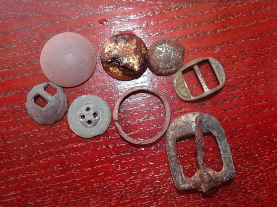 QUOTE(art_zakonm @ Sep 13 2012, 15:32) Потом как приехал к родителям в Староминскую там еще выезжал пару раз часика по 3-4. результат скромен и монетки подъубитые. Там в 1877 располагалось селение по двум берегам реки , а теперь только на одной и ребята уже 9ть лет его выбивают и я чуток урвал,но удобрения делают свое пакостное дело. фоты тоже прикрепляю,. 2 коп.1914 года числил эликтролизом- это мой первый опыт. Поднял в первый день 2коп 1914, пуговку, 5 коп. 1865 и 1/2 коп. 1909г., во второй день 2 ко. 1816 и как мне видится пуговицу с орлом и вроде пушками подскажите точно ли пуговица а какого периода времени и что за пуговка? Всем признателен за внимание. Еще вопросик ,на первом фото на руке внизу какое-то колечко с "бубенцом", уже второй раз попадается, что это? -------------------- Вы, это! Пишите, если что!