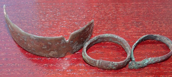 во второй день целое кольцо, 3 коп. 1938г, пару пряжек и одну пуговку, еще часть ,видимо, браслета медного, 1коп и пулю по которой вопрос чья она и какого периода?. и перед отездом еще конинку, 20 коп серероян. и 1/2 коп. Поле по которому ходил лет 20 не пахалось и там скот выпасают,. а так хочется его перепахать и походить. Постоянно местные подходили и все говорили как один практически одно и тоже, как исчезла, как раньше после пахоты монеты собирали ну и по войне оч. много гильз наковырял (более 300т патронов, после чего перестал считать). Еще братан подогнал штык нож который выпахал трактором. Вложенные эскизы изображений -------------------- Вы, это! Пишите, если что!