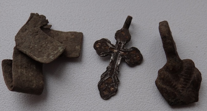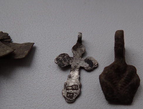 да, крест хорошо, но мне не попался. Я вот всетаки сбил ломку в субботу. аж 13 монетосов поднял, есть конечно убитые но и приятные есть, выставляю их и масончика тоже, его успел почистить эликтролизом. так же крестик попался, вреде как царская проба и еще верняя часть видимо какогото знака наградного, вроде корона просматривается.