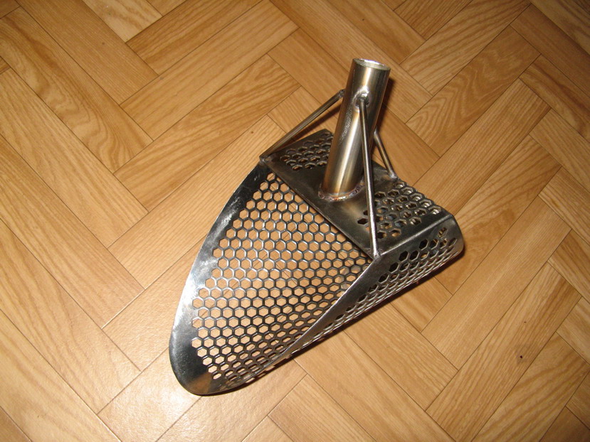 выглядела вражина как черпак с дырочками и короткой ручкой. твой конус с ручкой для копа в воде немного иное но принцым тот же,я не опариваю твоё авторство и не ставлю под вопрос рабочие качества ,но моё имхо я уже сказал,для моих условий класический принцып скупа вгоняемого ногой под весом собственного тела более продуктивен и удобен. хотя доведу парочку изделий до финиша и поюзаю подольше ... может что и выстрелит,например для сухого песка... -------------------- если у Вас нет моего скупа для пляжного поиска,можете написать мне в личку ...