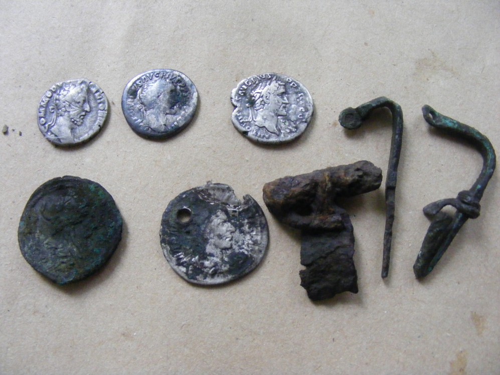 Та не на ребро как раз не было.Денарики (те шо по меньше) лежали нормуль для любого прибора а вот антонинианы были проблемные как по глубине так и по карозии.Фибулы тоже не конфетка.Знаю из опыта что их ковырнуть в таком сохране проблемно.Вобщем пока все ОК там будет видно.