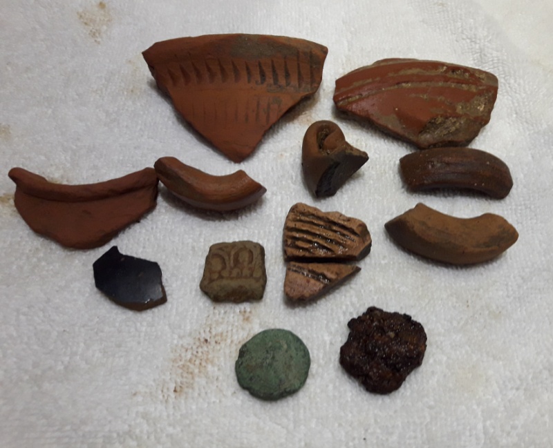Ни по русски ни по английски не говорит. Так чуть чуть общались полу напальцах. Находил при мне только монеты. Алтын ек! Золота нет. На пляже отеля зараннее как всегда познокомился с охраной, угостил шоколадками и сигаретами. Сам не курю брал специально на презенты. Так же познокомился с начальником охраны. Он хорошо говорит по русски. Копал каждый вечер с нами. Претензий не было. Мусор собирал и бросал в урны. Ямки закапывал.Ему это очень нравилось.Говорит, что местные копают постоянно. Их гоняют только за ямки и разбросанный мусор сотрудники отелей. Говорит, что впринципе копать нельзя, но все копают и туристы тоже. Главное что бы не в археологических местах. За это кирдык сразу. Рядом с пляжем на мысу античные развалины, не музей. Там много ямок от копа как старых так и свежих. Керамики горы. Нашел глазами в ручейке после дождя античную медную монету. Так же нашел фрагмент римской мозаики. Когда днем после шторма уплывал за мыс вдоль отвесных острыз скал, увидел местных что то собирающих на этих скалах под обрывом. С воды видео плохо, думаю собирали красивые фрагменты чернолощеной керамики. Были с большимы полиэтиленовыми пакетами. Потом посмотрел на мысу, в этом месте после ливня со скалы сильно смывало культурный слой. Видимо собирают то что смыло. В море на дне осколки амфор, каменные блоки.Где пляж была гавань. Там бы с аквалангом и прибором поискать. Эх жаль что нельзя. На пляже накопал только ходячку, в основном наша, Бижутерия, пару серебрушек. Алтын ек. После шторма утром нашел штук 20 очковю были и хорошие, но все шмыганные. Фото отчет ниже: |