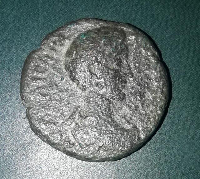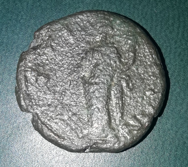 Первые века н.э. Имперский Рим или провинциальный, сказать по этой фотке трудно. По месту находки и по тому, что я по портрету не могу узнать императора, это, скорее всего, какой-то провинциальный выпуск. Букв SC тоже не вижу, что говорит о том, что это не имперский выпуск (впрочем, может, они там и спрятались где-то, не знаю, сохран не очень хороший). На обороте изображена Фортуна, держит якорь и рог изобилия. Буквы, к сожалению, не могу разобрать.