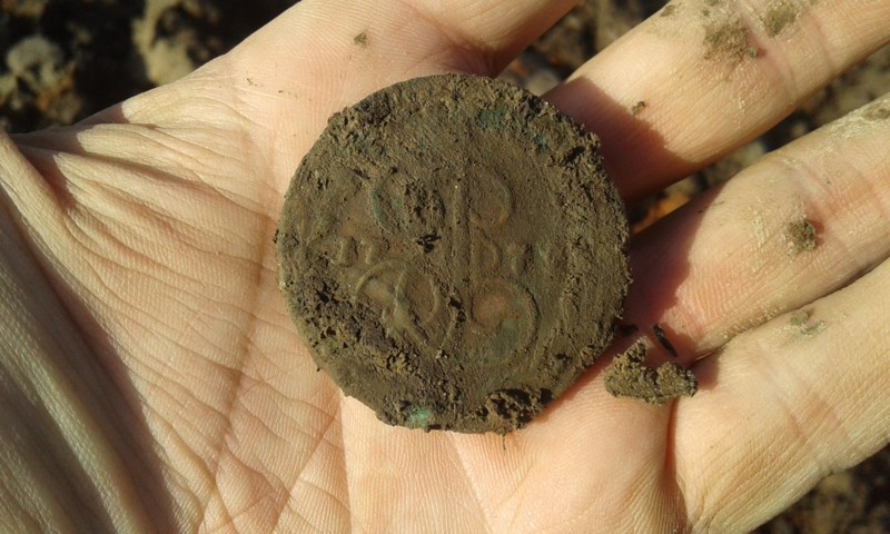 С самого начала сегодняшний коп не удался, подъехал к полю, смотрю машин штук 20 припарковано,думал грибники,хотя откуда в полях грибы?,смотрю на поле палатки стоят,людей много,флаг какойто развивается на шесте,я подумал слет комрадов,думаю я удачно заехал,но нет из-за кустов выехал новенький комбайн и поехал к толпе,я так и непонял что там эта толпа делала,толи комбайн принимали,толи пахать учились,толи там фильм какой снимали,но в итоге мне пришлось от их взоров уйти с распаханной деревни на край поля,поле еще не пахано,побродил по трактарным следам,3 копейки 1943 года вот весь улов