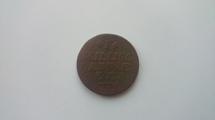 QUOTE(chara @ Jun 27 2014, 21:04) Пришел домой помыл монетку Вот Дания, Датско-Норвежская уния 1 скиллинг 1771 Медная монета, период правления короля Христиана VII, единственный год чекана монеты данного типа. |