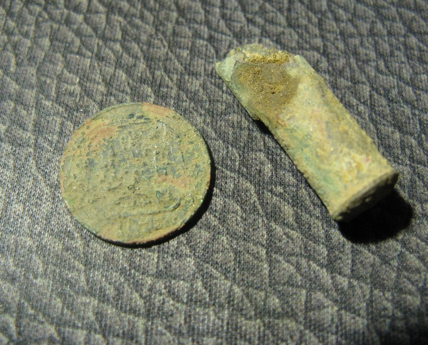 Сегодня открыл сезон, вышел погулять на часа на полтора на местное " эльдорадо " - земляную свалку. Землю вывозят со строек из Череповца , кстати если в исторической части города ведут строительство надо узнать куда вывозят землю, находки я думаю будут. У меня пока убитая 15 коп. и гильза от револьвера .