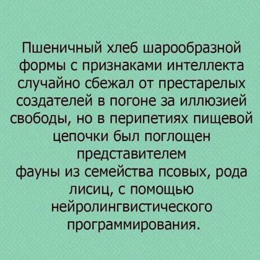 Готовит просвещенья дух И опыт, сын ошибок трудных, И разум, парадоксов друг, И случай, бог изобретатель, И беззаботный созидатель – Блаженный гений и талант – Один – алмаз, другой – бриллиант, Есть только варианты: Олегович, адепт, засрант я то не я -это АС ПУшкин Сообщение отредактировано пЫночет: Jan 12 2019, 00:15 -------------------- Землю - крестьянам