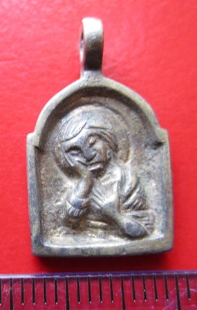 Форма иконки ттипичная для 11-13вв.По сюжету это может быть Мария Магдалина,которая раскаивается в поступке.Но ушко уж больно похоже на шайбу,выточенную на токарном станке.И изображение напоминает реализм нового времени.Поскольку аналогов нет,я склоняюсь к мнению о её позднем происхождении.Может,я и ошибаюсь.На ней можно или хорошо заработать или потерять имидж.
