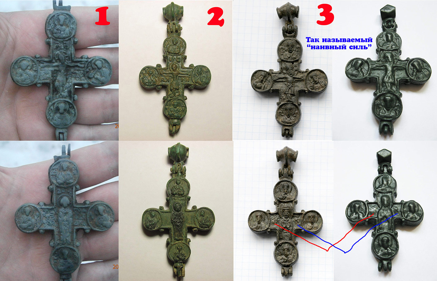 QUOTE(vorgol @ Jun 15 2017, 23:33) Jecky если разрешите , я за вас плюсану уважаемому AV.Sots-у. фраза :я вижу вы в этом понимаете.порадовала так что чуть ноги не обварил. Спасибо за отзыв! QUOTE(Калинин @ Jun 15 2017, 23:45) Думаю, не с Украины, а с Запада. Точнее - от синтеза понятий "наивное искусство" (Нико Пиросмани, Анри Руссо) и стилизации под седую древность. Стилизации, оговорюсь, относимой только к современным изделиям с "закосом" под архаику. Напр., современный крест, выполненный в нарочито архаичном, с минимумом детализации, можно считать выполненным в наивном стиле - но не истинно старинный предмет. Собственно, в научных работах термин, приведённый топикстартером, часто заменяется понятием "варваризированный", т. е. максимально упрощённый и отсылающий к простым древним формам. Напр., относящееся к "копательской" ставрографии безобразное понятие "кощейчик" наивно уже само по себе - предельно варваризированная фигура Распятого кому-то с небогатой фантазией напомнила скелет или Кощея Бессмертного... Илья, ну так так и называется - архаичный или варваризированный. А не как то по иному. По этому мне и не понятен термин "наивный стиль". По поводу Запада не знаю, но я не раз видел такую атрибуцию от ребят с Украины. При чем не раз спорил по поводу того, что крест с надписью "Богородица помогай" и данный крест, это совсем разные кресты, а не одно и то же. -------------------- Чем лучше узнаешь людей, тем больше нравятся собаки...
