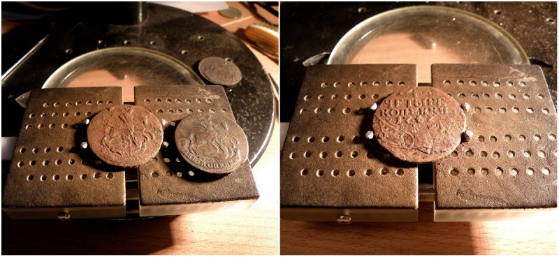 Работать с этой монеткой было одно удовольствие, т.к. по сути своей, коррозия не очень над ней поглумилась. Микроскоп МБС-1, самодельные резцы из твердосплава...и два вечера. Это всё что потребовалось для востановления этого перечекана. У и на финише, подтанирол её Брасс Блэком. Вложенные эскизы изображений -------------------- Риск - благородное дело. Нас всех когда-нибудь укокошат!