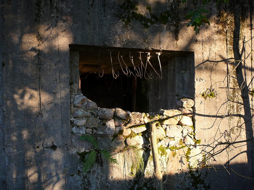 А что за крюки висят в окне ДОТа???
