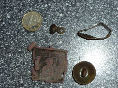 Находки ни какие, да и ливень под вечер. Как то так. Да еще попался патрон с какой то посеребренной или не пойми какой пулей 9 мм на глаз. Наверное "Ванхельсинг" потерял. Вложенные эскизы изображений -------------------- Копатель нервы в узду, приехал на поле не ахай,