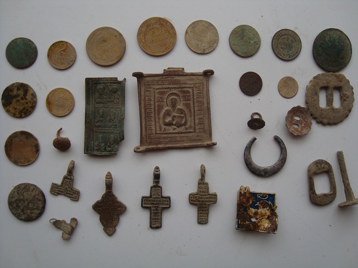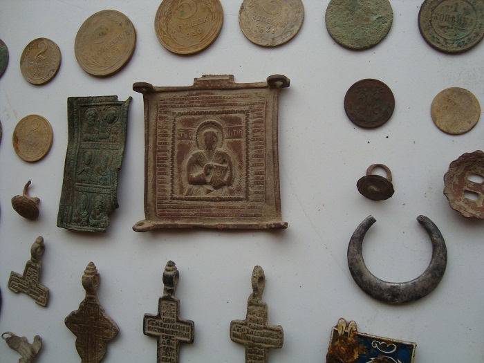 Из находок: 5 коп.- 1832г. 5 коп.-1859г. 5 коп 1868г. 1 коп. 1800г. денга 1739г. полушка 1720г. на двух монетах так и не рассмотрел год, убиты ужасно. Полушка 1735г. из орловской обл. Как-то так) |