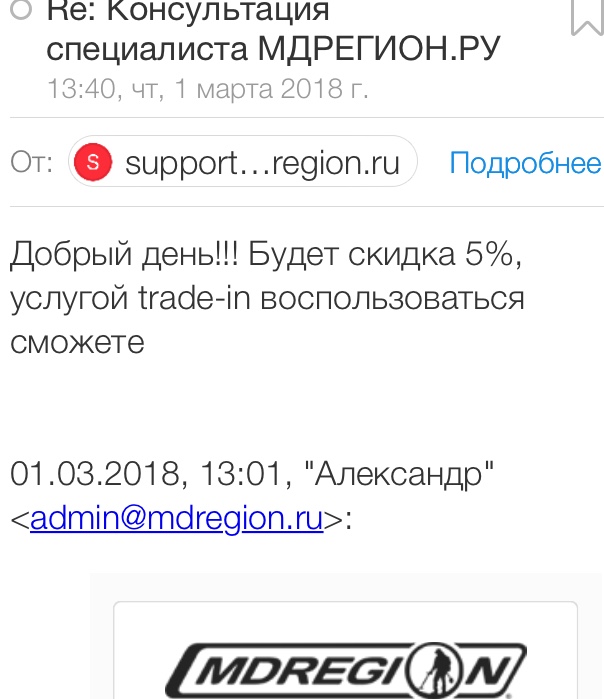 QUOTE(Shok_in @ Mar 24 2018, 04:13) Дорый вечер! Задал вопрос на оф. сайте мд, там есть функция, «консультация специалиста», проверено ранее, отвечают знающие, не те что сидят в магазинах, что ответят отпишусь вот человек писал что ему перезвонили и извинились... https://www.reviewdetector.ru/index.php?sho...entry17793508 |