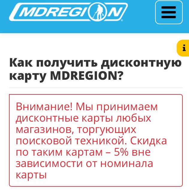 QUOTE(tndrey @ May 5 2018, 10:05) Коллеги, прошу прощения - нет ли у кого-нибудь возможности скинуть фото скидочной карты МД Региона на WhatsApp? Внес вчера предоплату за 800-ый, через неделю приедет (ноябрьский предзаказ). Буду очень благодарен за помощь! Напоминаю!!! МДРегион принимает карты на скидки любого магазина торгующего металлодетекторами, скидка 5% Вложенные эскизы изображений -------------------- Лопата, Уаз и прибор – джентльменский мой набор
