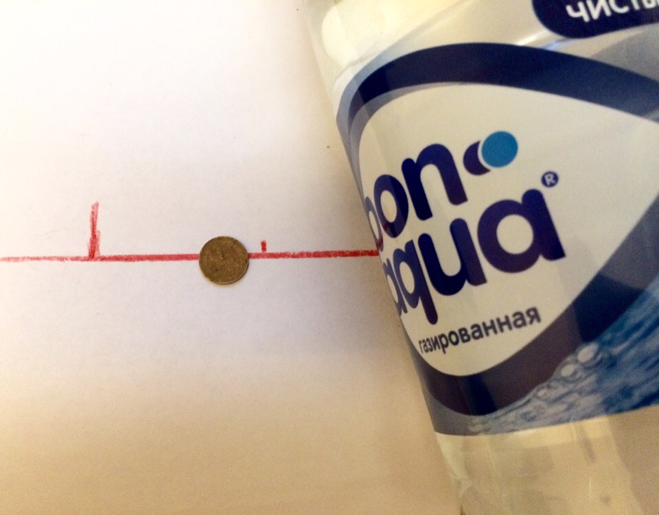 Еще кое что попробовал... Эквинокс 600. Бутылка 1.5 литра, с соленой водой, соли нахреначил туда, много, и под бутылкой копейка ссср. Высота соленой воды (диаметр бутылки) ~9 см