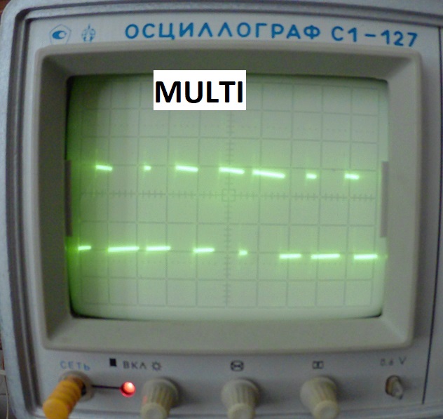 Видите на первой осциллограмме импульсы разной ширины ? Разные длительности импульсов и их комбинация это грубо говоря разные частоты. |