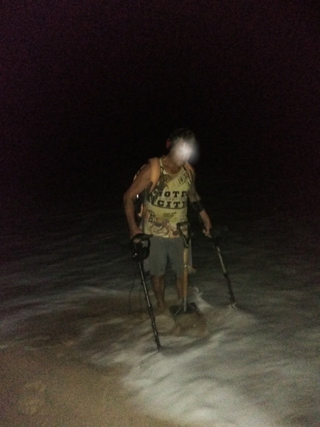 так ,почти два месяца поисков на гоанском побережье.С мультиком..Можно делать уже какие-то обобщения и показать результаты.Не смотря на свою стоимость ,он не уступает ,а иногда и превосходит именитых подводников.За этих полиора месяца он отбил себя как минимум трижды.Несколько серёжек,один гвоздик и шикарный обрывок цепки 916й пробы.Жаль,что отсутствует половинка замка и несколько звеньев. Сравнивал с веником 600 и 800.Разницы особой не заметил между ними.при проверке больших предметов типа этой цепи.Закопал в мокрый песок этот обрывок.,И мультик и 600 видят ее на глубине примерно 15-18см..Мультик на проге пляж .бг.20,чуйка 70.Большая чуйка приводит к фантомным сработкам .Это потолок.