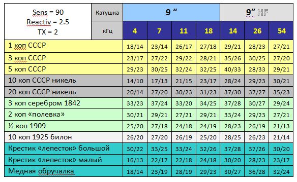 QUOTE(Yu.Ra @ Jan 24 2019, 22:58) А можно у деуса частоту 28 и скорость 1 поставить(все же 2.5 это скорее для мусорки)? Дело не в скоростях. Алгоритм обработки в приборе то один. Я сейчас глянул старые тесты для блондинки Деуса, там на ребре соотношения практически такие же на высоких частотах. Да, высокая частота дает несколько меньший разбег плашмя/ребро на некоторые цели, но и сама глубина уменьшается. |