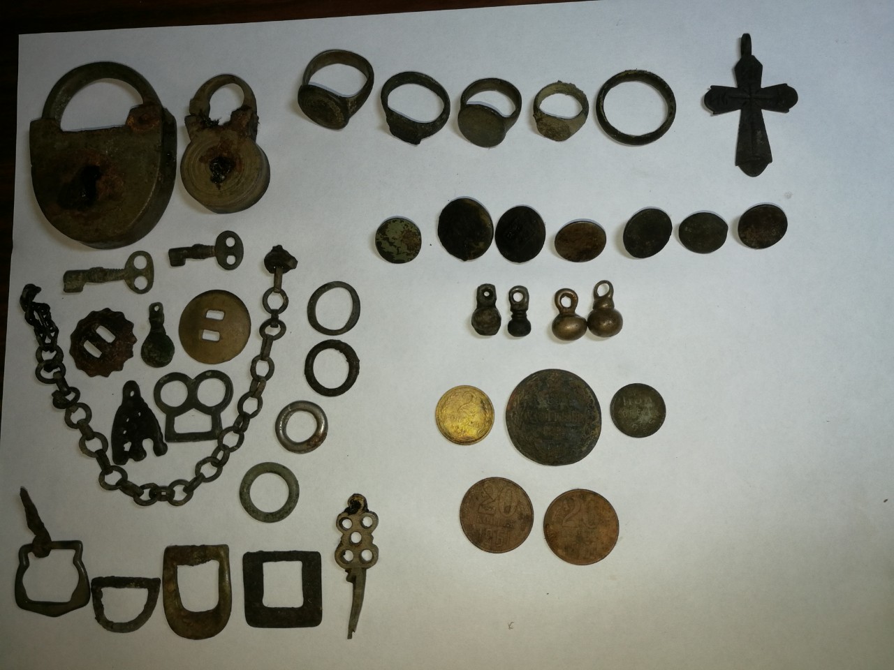 Третий выход с Эквиноксом. Начинаем понимать друг друга. Хотели на невыбитой поляне походить, но у нас на днях опять снега подкинуло да и лесовозы дороги просто ушатали, никуда с дороги не съехать. Пришлось ходить на двух полянках у дороги, на которых побывал наверное каждый копарь, проезжающий мимо. Приятель ходил с теркой 705, катуха марс тайгер. У него 6 монет и сопутки почти нет. А эквик меня удивил. Цели вытягивает чотко, главное не бегать. Как камрад выше писал капсюли это просто капец какой то.. Руки чуть не отвалились их копать, звенят то хорошо. Порадовали полкопейки 1925 года, вытянул в 10 см от чужой копки, сигнал был прыгающим, 26-4, мож на ребре стояла. И латунный замок.. Сигналил будто таз зарыт. И самое интересное в месте массовых копок. Такой сигнал не услышать это или глухим надо быть или копать с помощью лопаты, но без прибора
