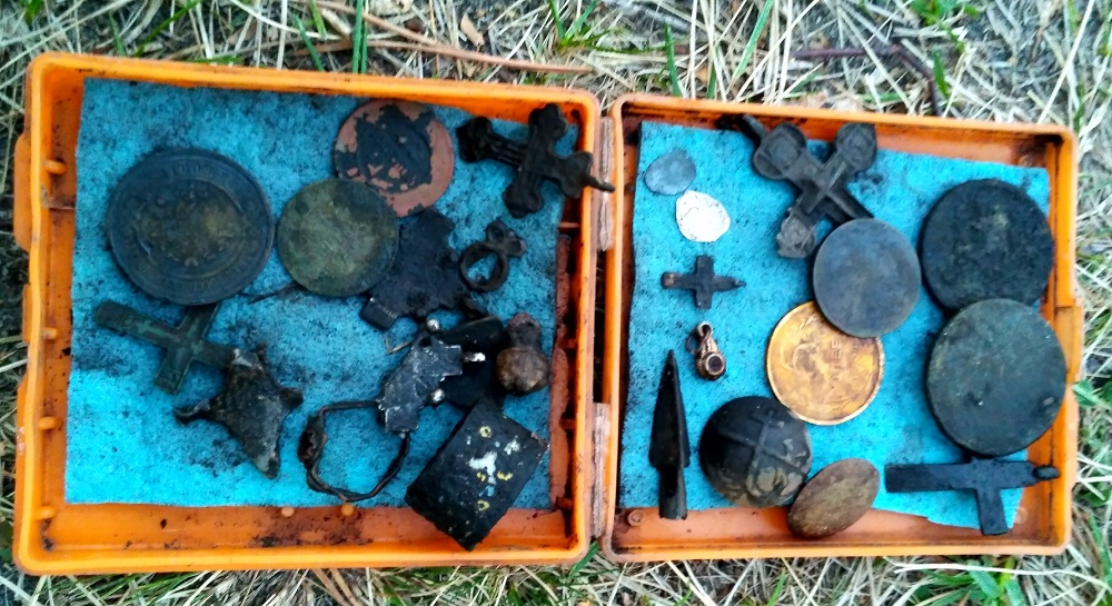 Всем привет.Вчера был выезд добить одно место тремя приборами я с 600 и два камрада (705 и гарет ат про) по цветным и полезным целям 600 их уделал 600 фото приложу, у 705 три медных монеты и три крестика, у гарет две медных монеты+ чешуйка + один крестик, 705 стаж 7 лет копа, гарет лет 10, у меня месяц с 600 и 4 года с 705. Мои настройки парк1 и поле1 чередовал , чуйка 23, АБ 0, грунт откачка, пороговый тон 5, полифония,скорость 2,в ушах копал, копал все что дает малейший цвет фото трака не сделал , но копал го с пол метра. Собираюсь на это место еще, товарищам оно уже не интересно,подскажите что можно до крутить у 600 что б ходить на максимуме?
