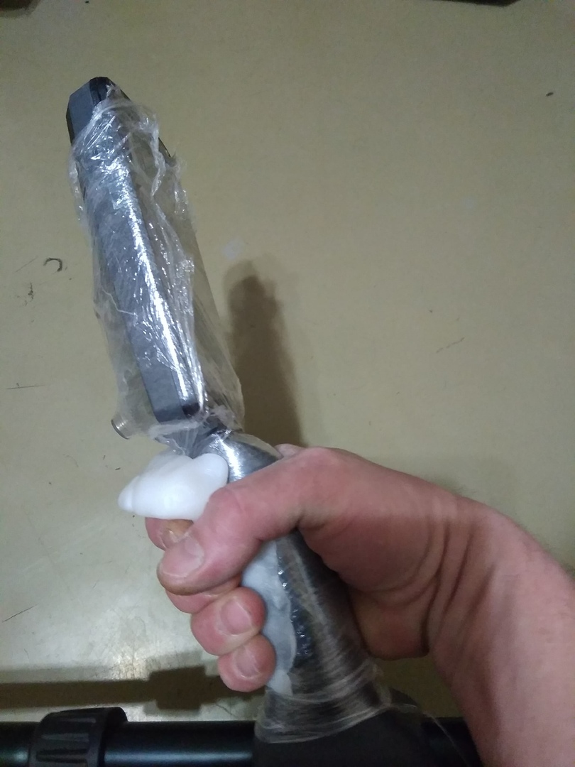 Во вторых, хочу внести свои пять копеек : Так как в наличии 2 прибора - веник и терка 705 и прочитав, что у эквинокса слабый подлокотник, переставил подлокотник от терки. Тут писалось, что он меньше, удобнее. Нет, подлокотник один в один. Возможно пластик разный. Далее, так же писалось, что ручка у прибора под другим углом, померил - угол совпадает. По диаметру тоже примерно одинаков. Только у терки ручка овальная, у веника круглая. Неудобство, скорее связано с тем, что рука постоянно сползает и сильнее сжимаешь рукоять. Были предложения с эспандером. Я пошел другим путем. Купил полиморф и сделал из него, что то наподобии гарды. Фото прилагаю. Теперь рука расслаблена, прибор лежит. практически на одном пальце. Ходить стало гораздо комфортнее. Вложенные эскизы изображений |