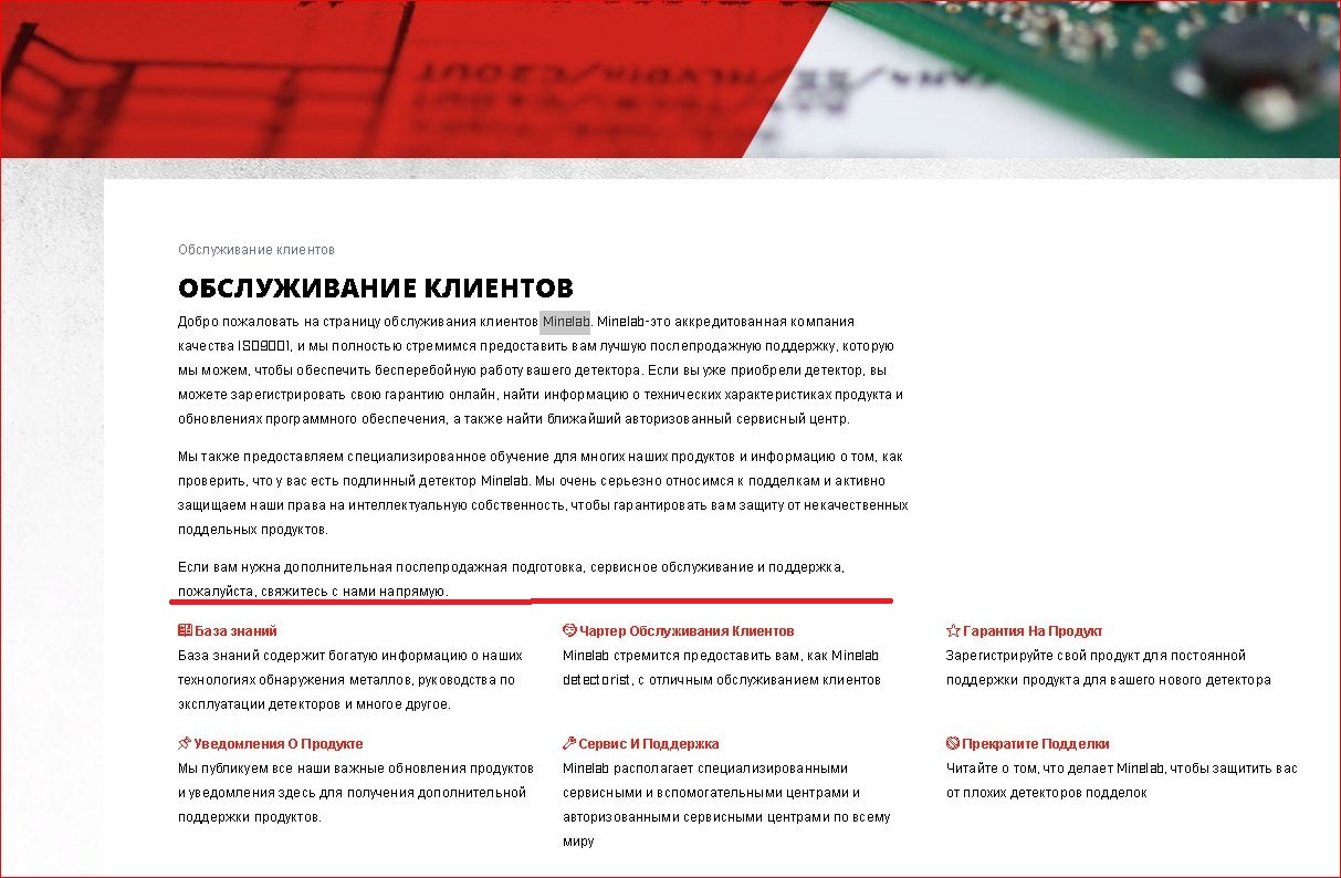 QUOTE(GVOL @ Jan 11 2021, 19:25) Поддерживаю! Так их, в трещину всех! А то как будто купили у них спичек коробок, за 10 рублей... Они нам должны звонить и спрашивать " Как у вас прибор работает? Всё ли хорошо? А может быть разрешите сделать вам техобслуживание? Ведь это входит в перечень гарантийных работ! Каждый сезон они обязаны проводить ТО! В первую очередь надо бережно относится к своему прибору, правильно эксплуатировать, хранить и перевозить его. Техобслуживание, тем более каждый сезон, не входит в не существующий перечень гарантийных работ. Если не так, дайте ссылку или скан документа, подтверждающее обратное. А если, уж так хочется провести "техническое обслуживание", то эта инициатива в первую очередь должна исходить от владельца прибора. https://www.minelab.com/russia/ru/support/c...er-care-charter Вложенные эскизы изображений |