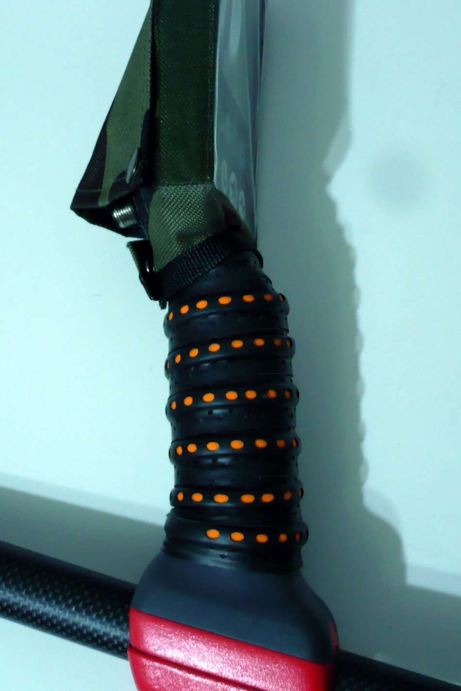 Уже писали что применяют оплётку велосипедных рулей от скольжения рукояти. Намотал, кажется вроде толстовата ручка стала, завтра прогуляюсь и отпишу как оно.