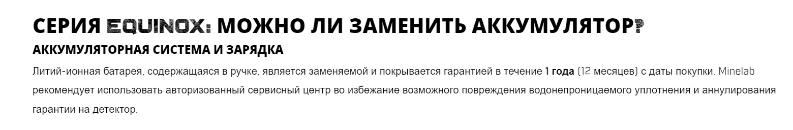 QUOTE(ATpoxa @ Jan 12 2022, 23:50) Скорее трудности перевода. All Minelab Authorised Service Centres can perform the internal battery replacement if you prefer to have the work performed without possibility of voiding your Control Panel warranty. Все авторизованные сервисные центры Minelab могут выполнить замену внутренней батареи, если вы предпочитаете, чтобы работа выполнялась без возможности аннулирования гарантии на панель управления. https://parts.minelab.com/category-s/270.htm ну, parts.minelab.com - это портал для сервисов, а не для юзеров А вот оф.сайт другое дело На нем есть раздел вопрос-ответ https://www.minelab.com/russia/ru/knowledge...asked-questions и в ветке equinox-ов много вопросов касаемо АКБ, один из них как раз про это: т.е. если вы утопите прибор и экспертиза выявит что это произошло в следствии вмешательства кривых рук, то вам откажут в гарантии Ни кто не в курсе цен на данные работы в наших сервисах? Ааааа, увидел выше ... 4 рубля... 4т.рублей как раз она (оригинальная, новая) стоит на ebay... Т.е. если смотреть с этой стороны то не дорого... Но вот если взять не оригинал ... от 300р на Али, то совсем другой расклад Сообщение отредактировано PUHH: Jan 13 2022, 08:16 |