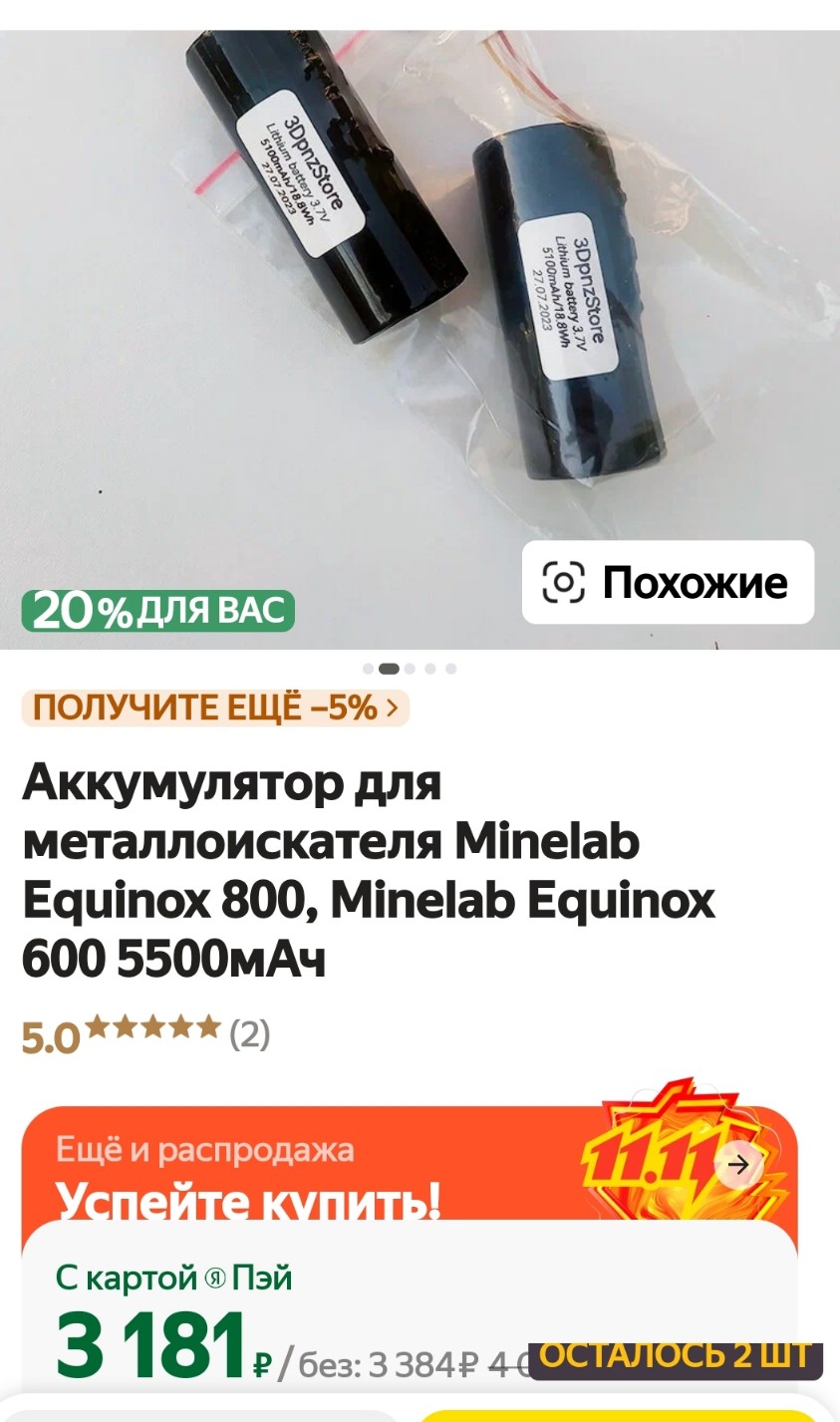 Подскажите, пожалуйста, где можно приобрести хороший аккум на эквинокс. Уже два раза поменял (брал neovolt, а также самодельный 5400 mAh на Авито из Пензы)- никак не хотят держать заряд больше 8 часов. Может где-то можно найти оригинал? В магазинах металлоискателей как-то не увидел на сайтах. Или возможно проблема не в аккумах, а в чем-то другом? |