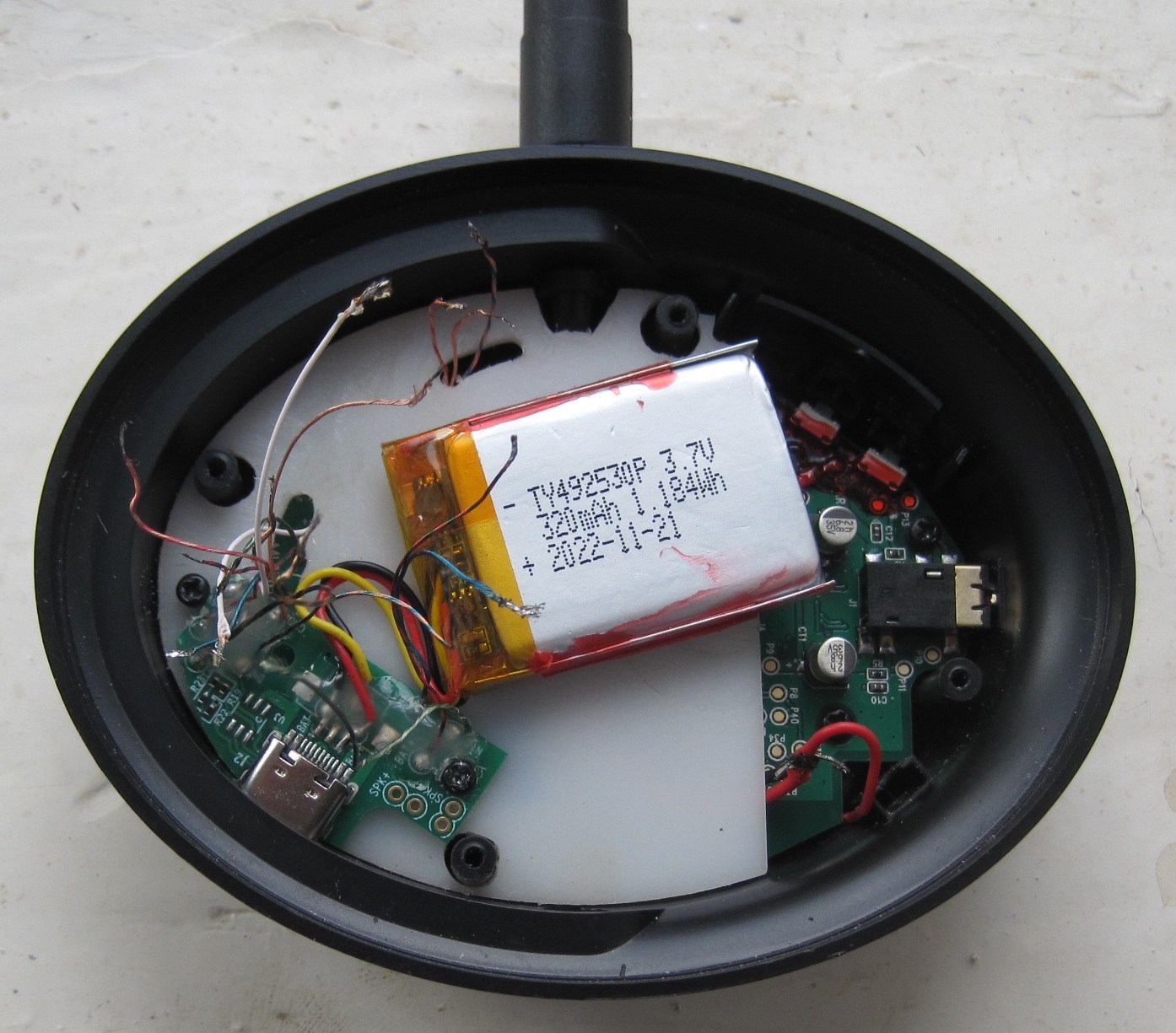 Я бы аккумулятор ещё заменил. 320 мА/час ни о чём. Менял в других наушниках, ставил на 1200 мА/час, хватало очень на долго.