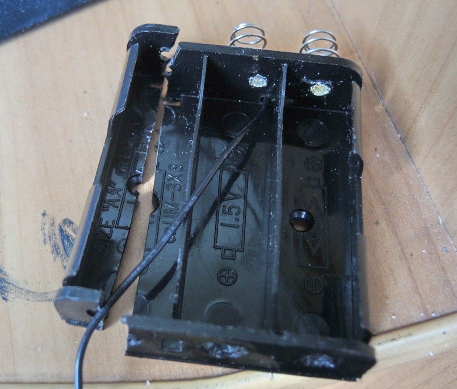 Купил детальки, стал ваять. Блок для 3-х батареек оказался широковат, урезал. Затем аккуратно переставил пружины изнутри наружу. Потом вклеил радиатор, на него через термопасту установил полупроводниковый элемент (стабилизатор?), спаял, проверил напряжение на выходе. Сообщение отредактировано Делв: Nov 22 2015, 09:06 Вложенные эскизы изображений |