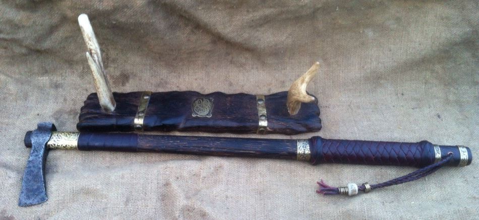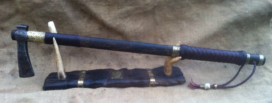 Отличная работа .первый топорик и нож понравились.А как плетение сделано на рукояти топорика?